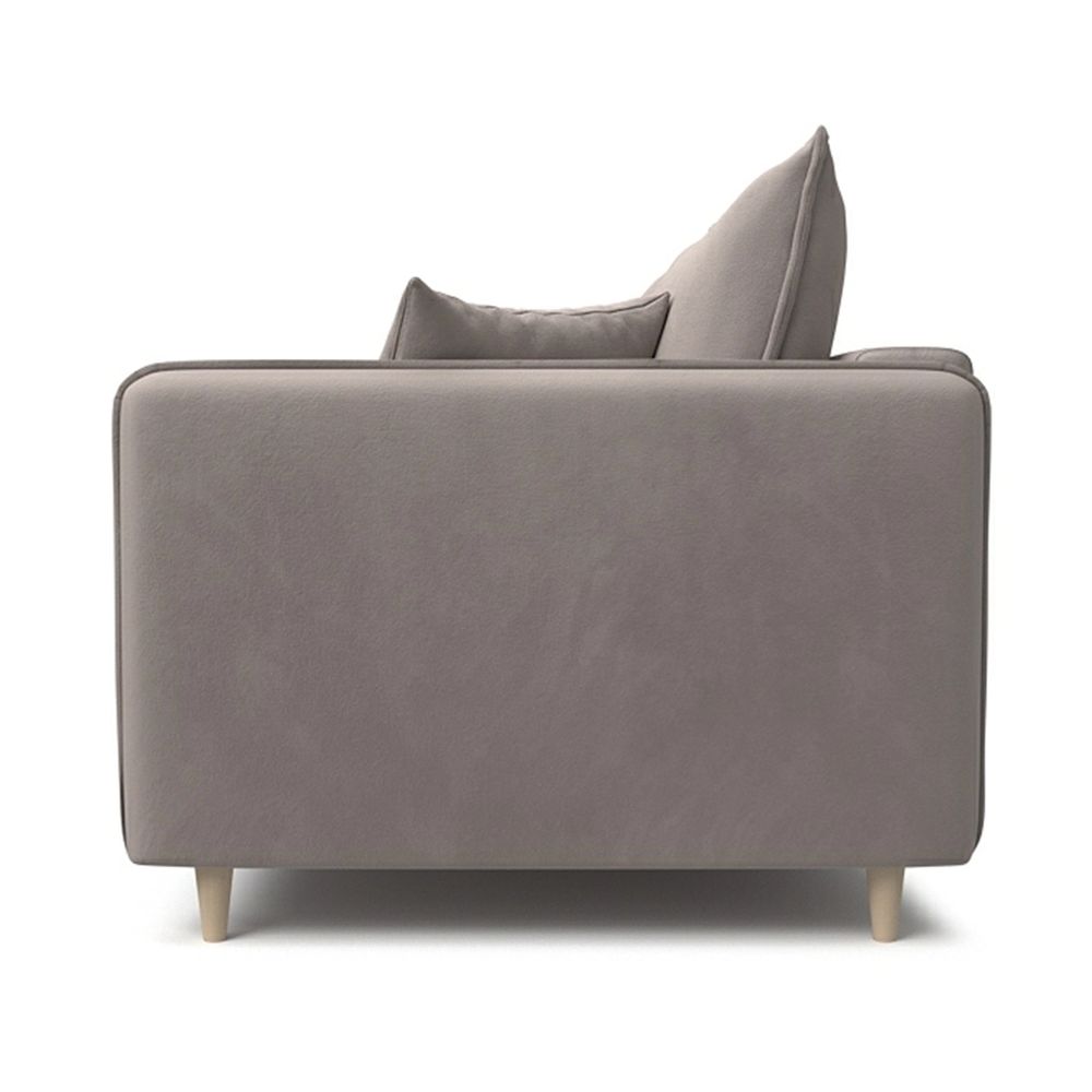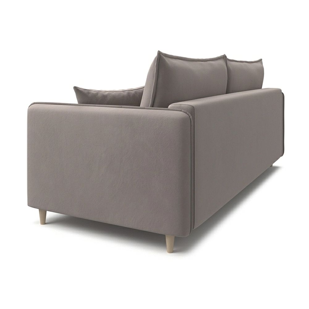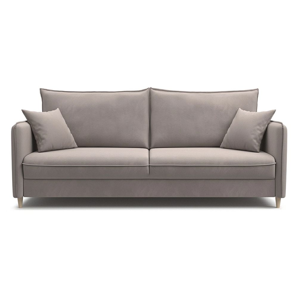 Sofa bed «Fjord» combines functionality and a laconic look. It has all the basic elements of the scandinavian style: narrow armrests and soft cushions with a fashionable «French seam», a pair of additional miniature pillows for interior decoration, and decorative folds in the places where the armrest and seat are rounded.