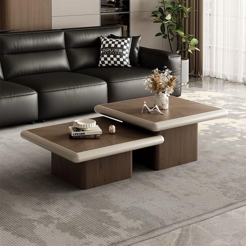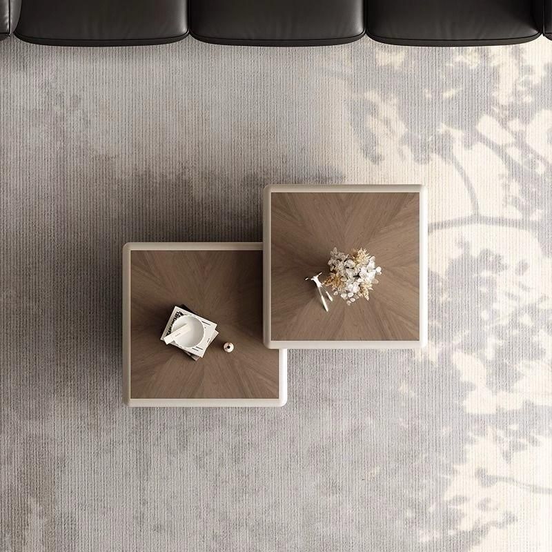 A stylish and modern double coffee table set that beautifully combines the warmth of wood with geometric elegance.