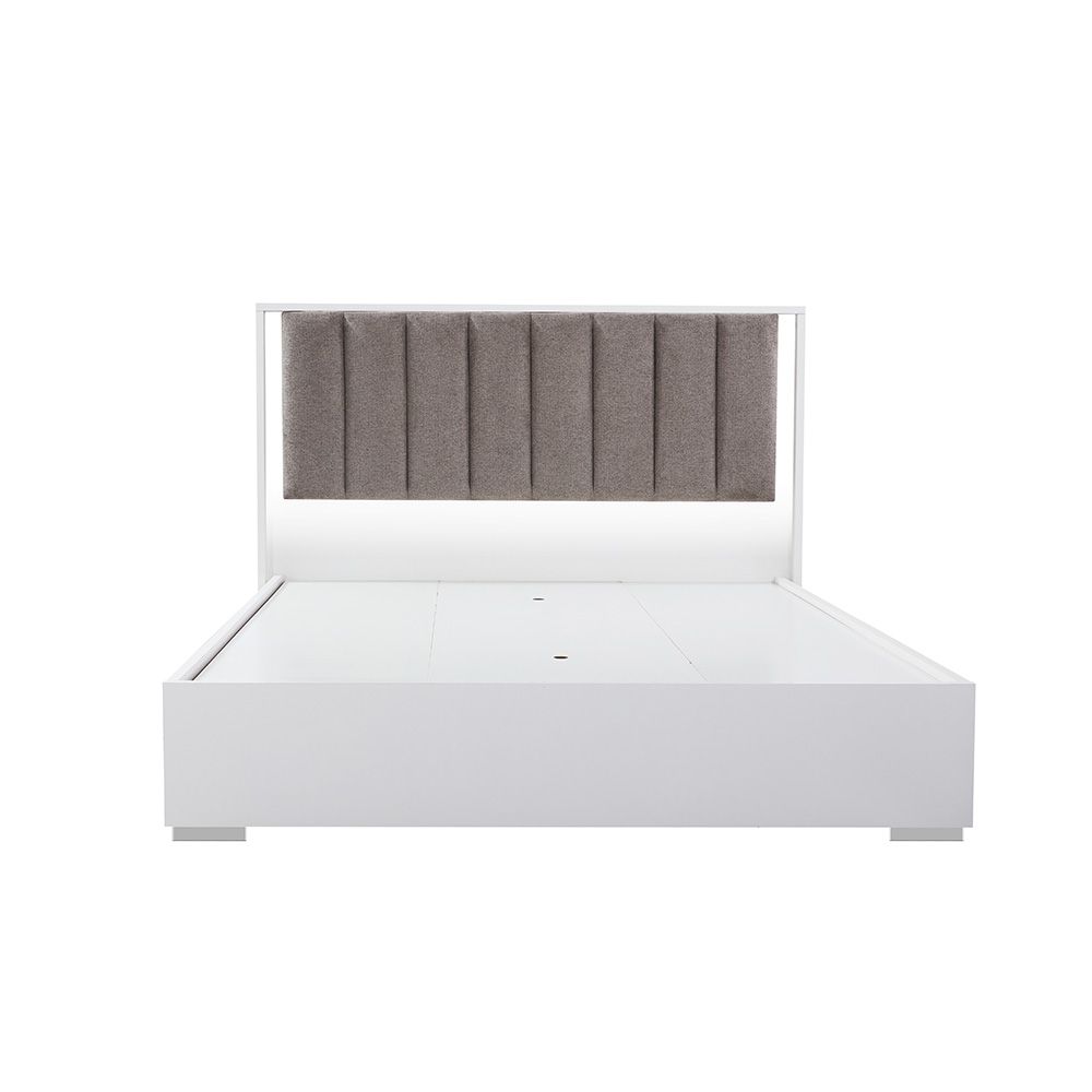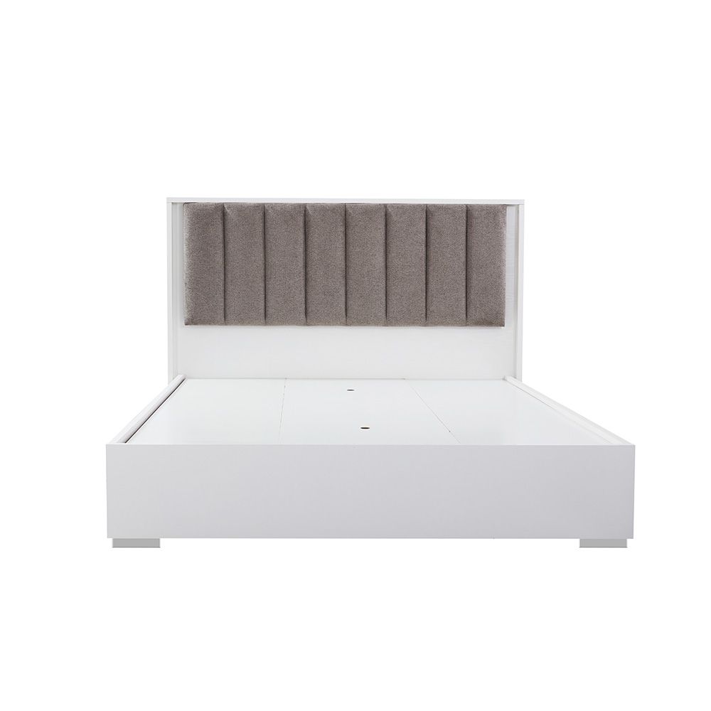 Sparkle 160X200 Bedroom Set With Upholstered Headboard & LED-HG White & Beige