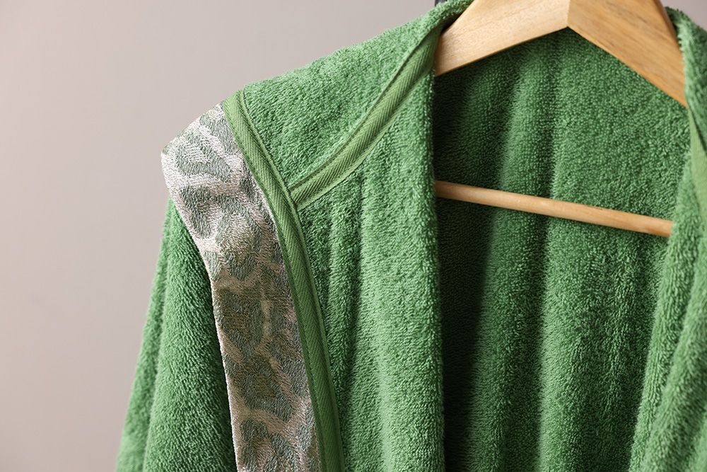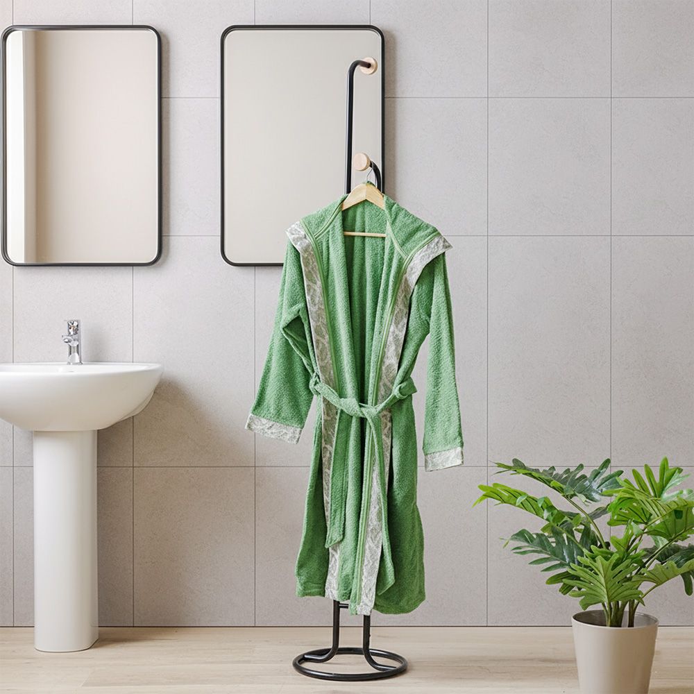 Ss25-Eleganza Hooded Bathrobe With Lace Green