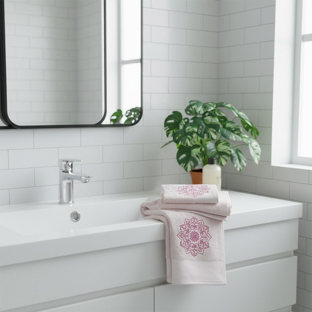 Ss25-Eleganza Sharone 3Pcs Towel Set 30X5Cm,50X90Cm,70X140Cm Pink