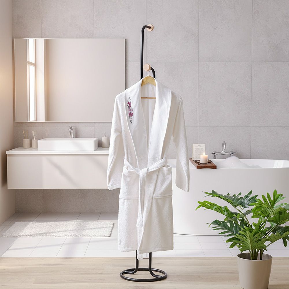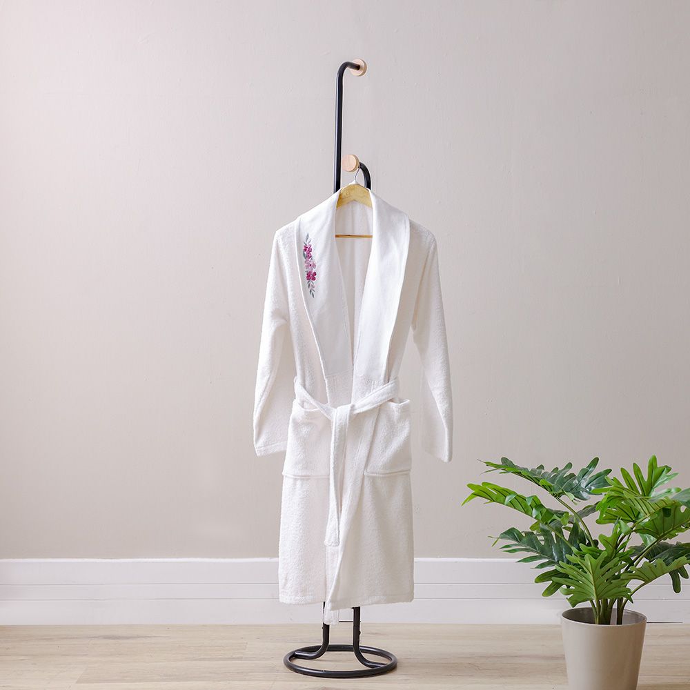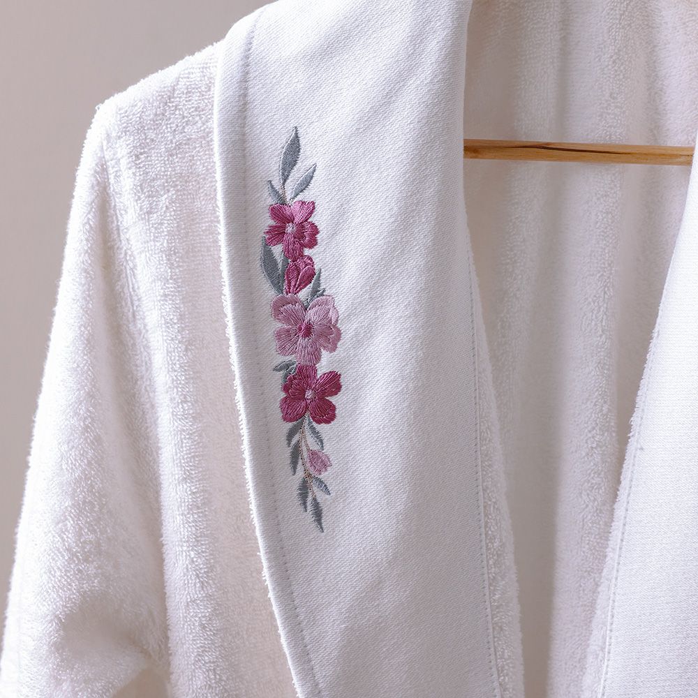 Ss25-Eleganza Shawl Collar Bathrobe With Embroidery White
