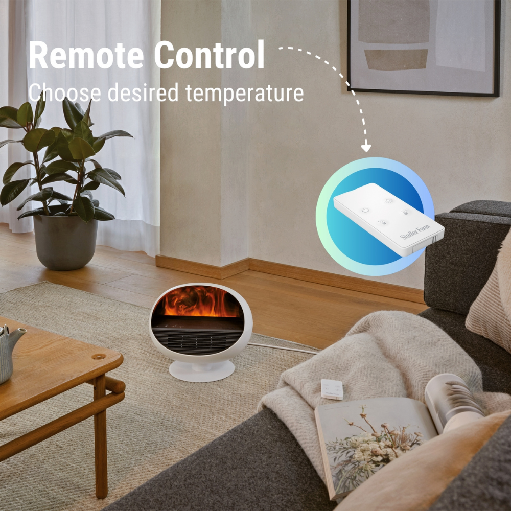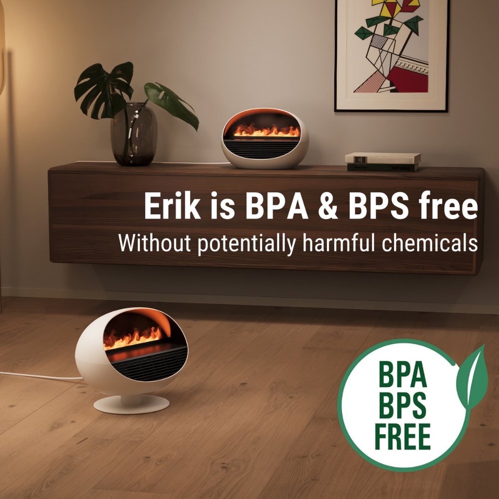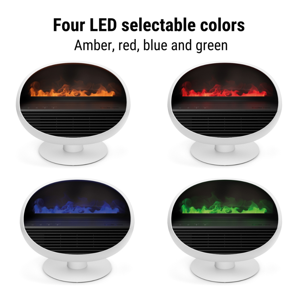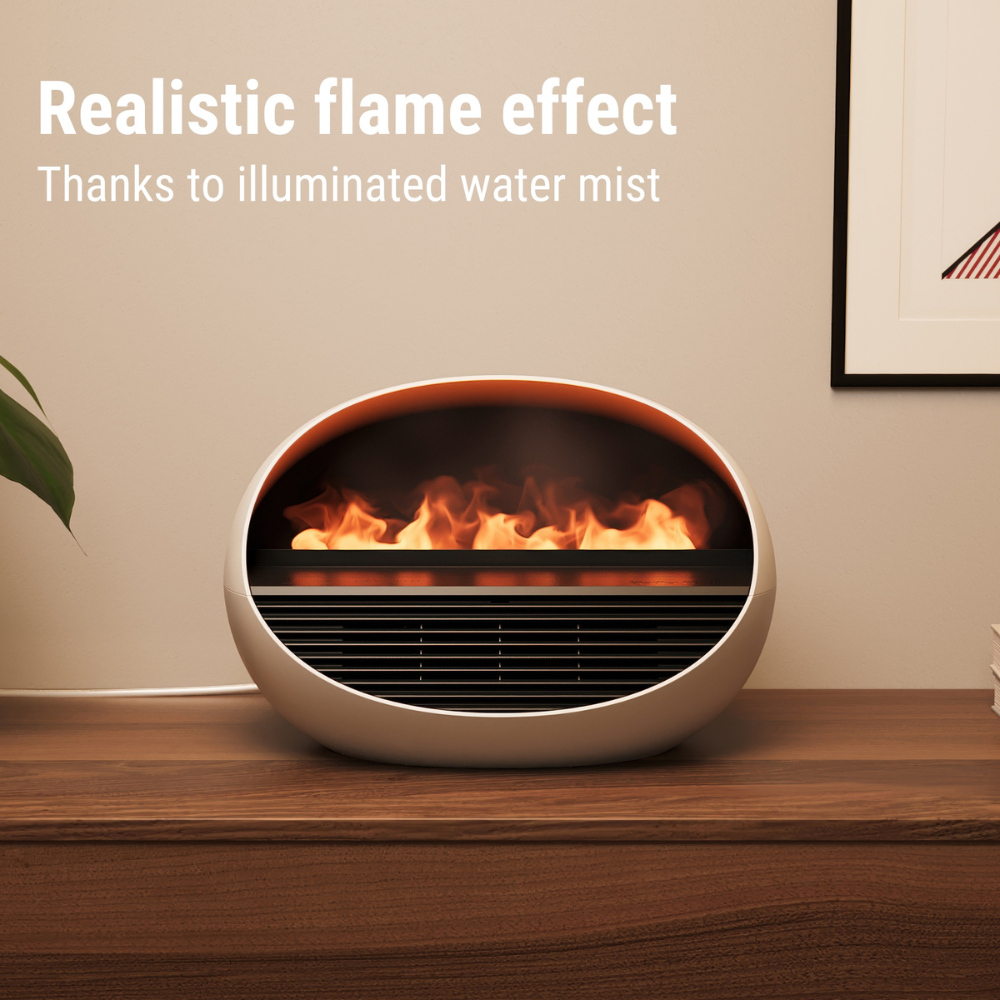 Erik brings the atmosphere of fireplace into any room – an impressive combination of fan heater, electric fireplace and aroma diffuser.