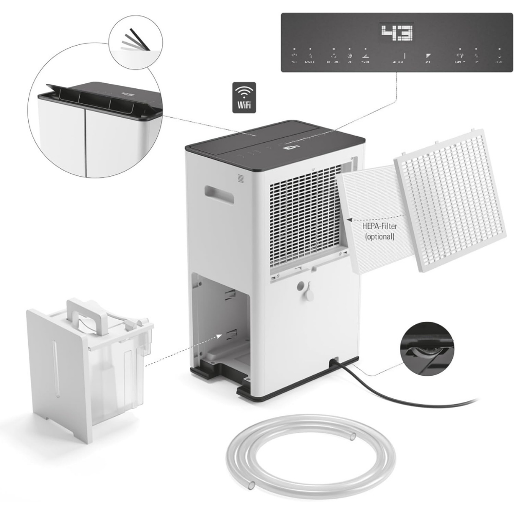 MOBILE AND PRACTICAL DESIGN: With built-in carrying handles and concealed transport castors, Lukas is designed for easy mobility, allowing you to move it around your home effortlessly to target areas with high humidity levels.