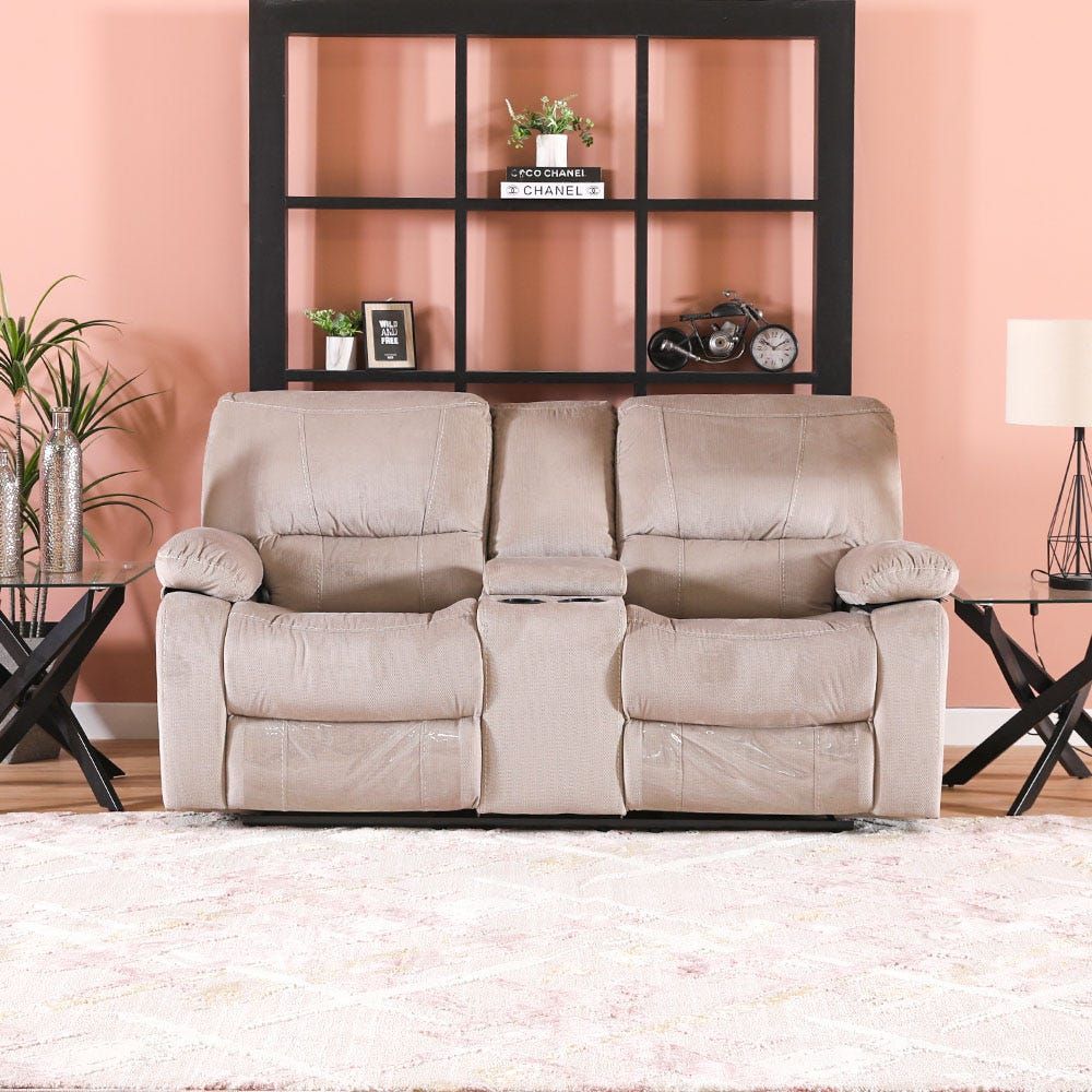 Stallion 3+2 Fabric Motion Recliner with Console Set -Plush Beige