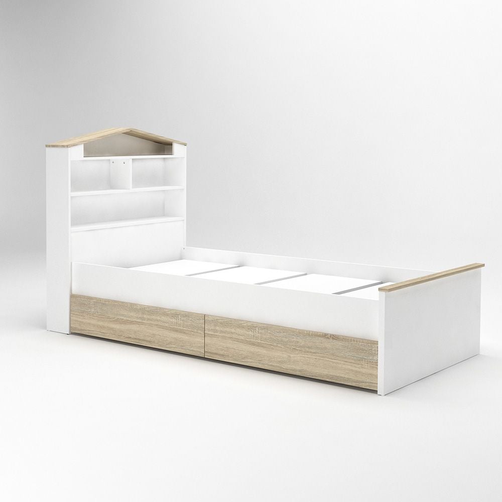Stanley-V2 90x200 House Bed With 2 Drawers-Sonoma Oak & White