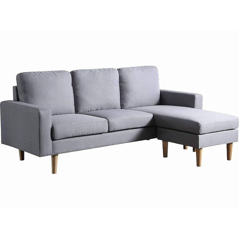 Studio Luxe L-Shaped Sectional Sofa w/Reversible Chaise, Wood Legs, Modern Scandinavian Corner Sofa Convertible Living room furniture, 194x128x87cm, HC Home Canvas; Strom Grey; T32-Storm Grey