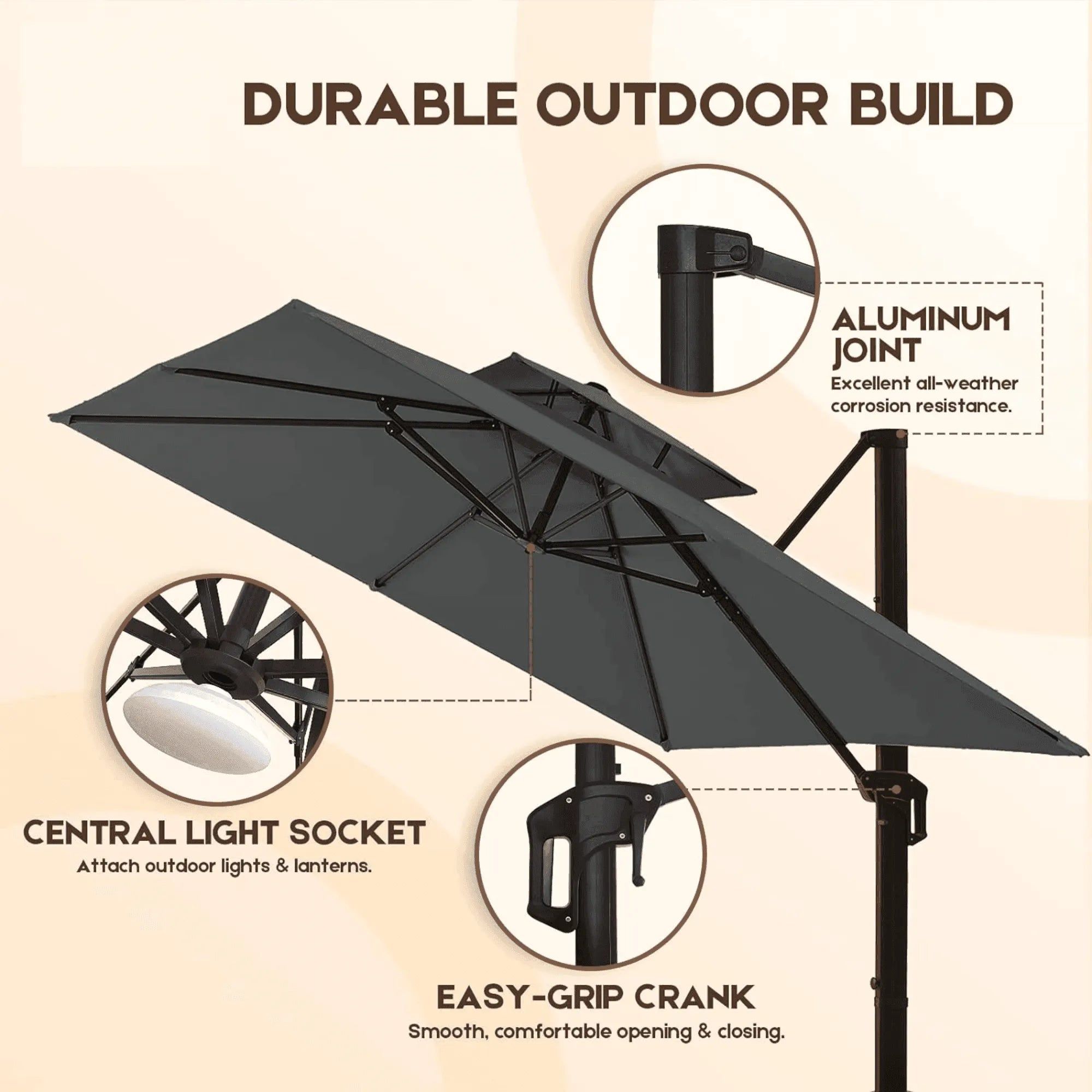 Sunshade Aluminium Garden Umbrella with Rotating Handle Stylish Outdoor Patio Decor and UV-Resistant Canopy 3 x 4 Meter (Grey)