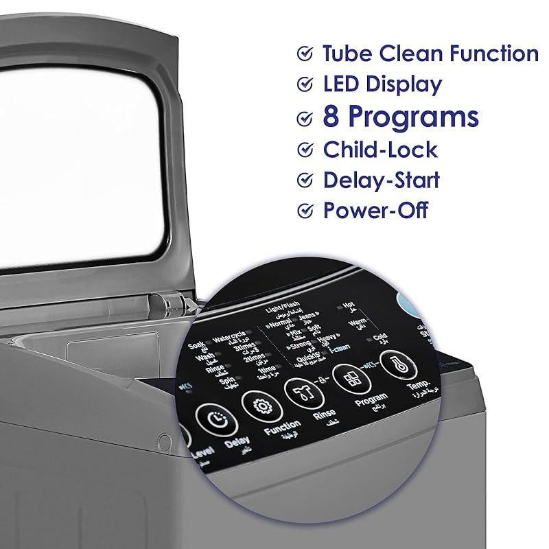 Super General 7.5 kg fully automatic Top-Loading Washing Machine SGW-752-S, Silver, 8 Programs, efficient Top-Load Washer with Child-Lock, LED Display, 1 Year Warranty