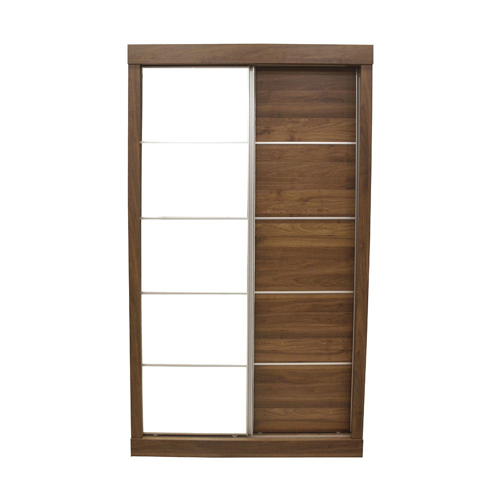 Supreme New 2Door Compact Sliding Door Wardrobe With Mirrors-Light Walnut