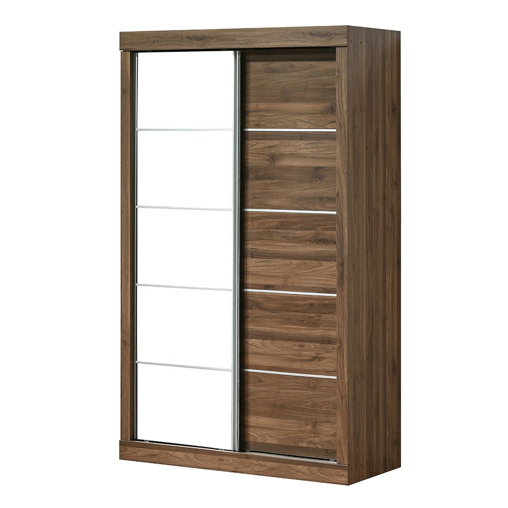 The product Supreme New 2Door Compact Sliding Door Wardrobe With Mirrors-Light Walnut images have props used for illustrative purposes. Product Color may vary slightly due to photographic lighting or your screen settings.