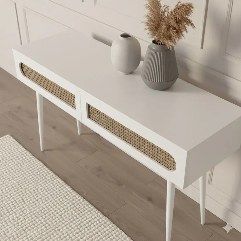 Sura Rattan Console Table White