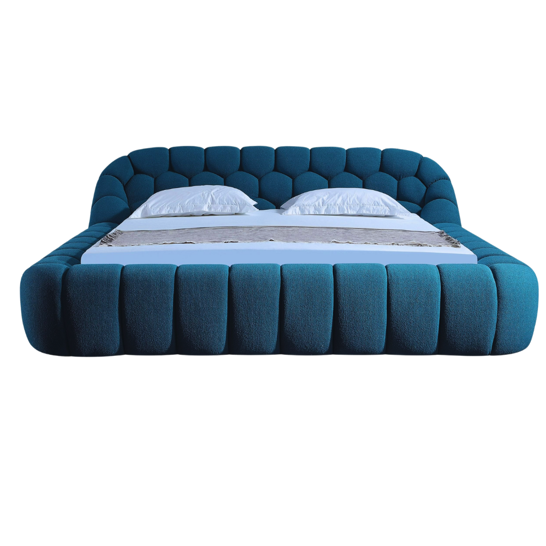 Syrux Bubble Design Modern Cloud Bed In Soft Boucle Fabric Blue Queen