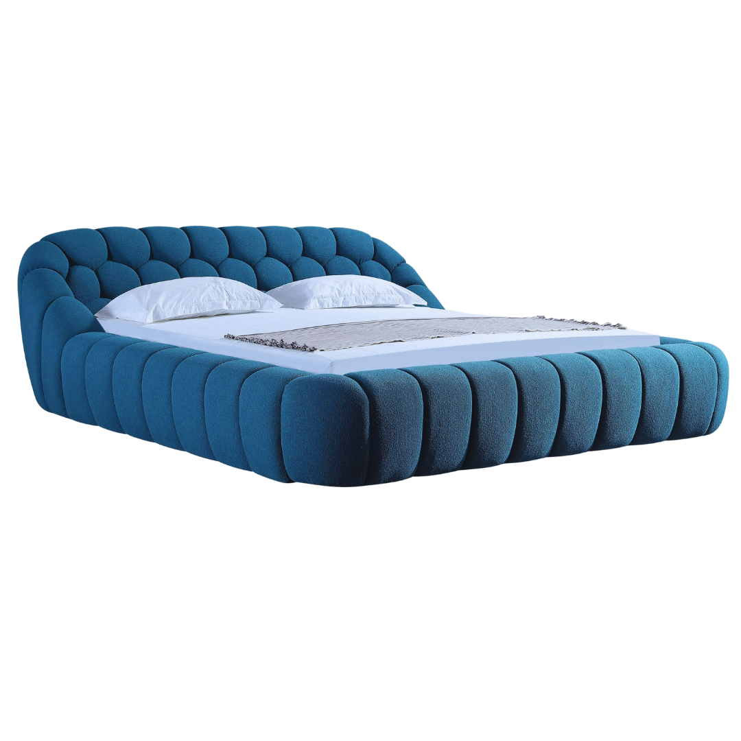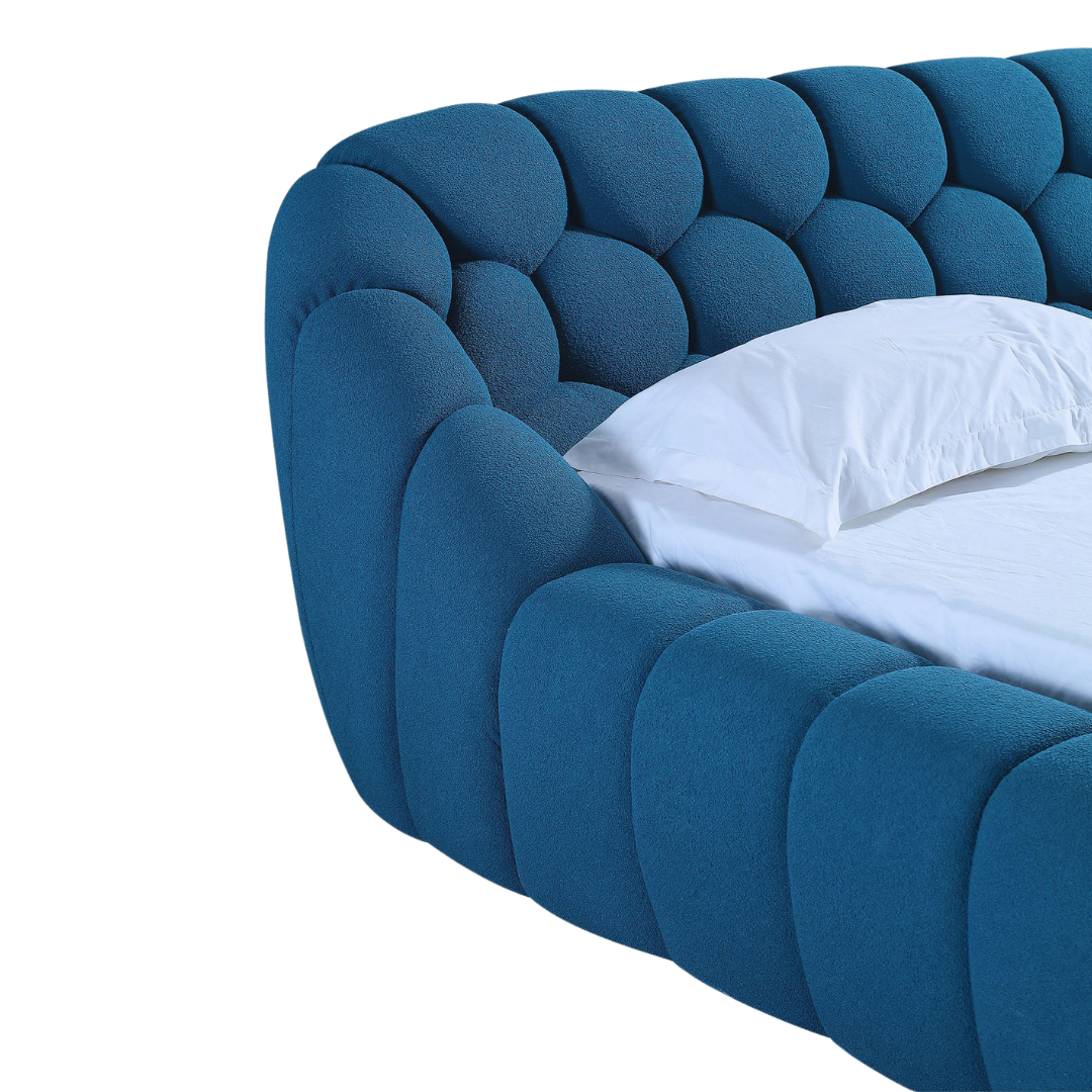Syrux Bubble Design Modern Cloud Bed In Soft Boucle Fabric Blue Super King