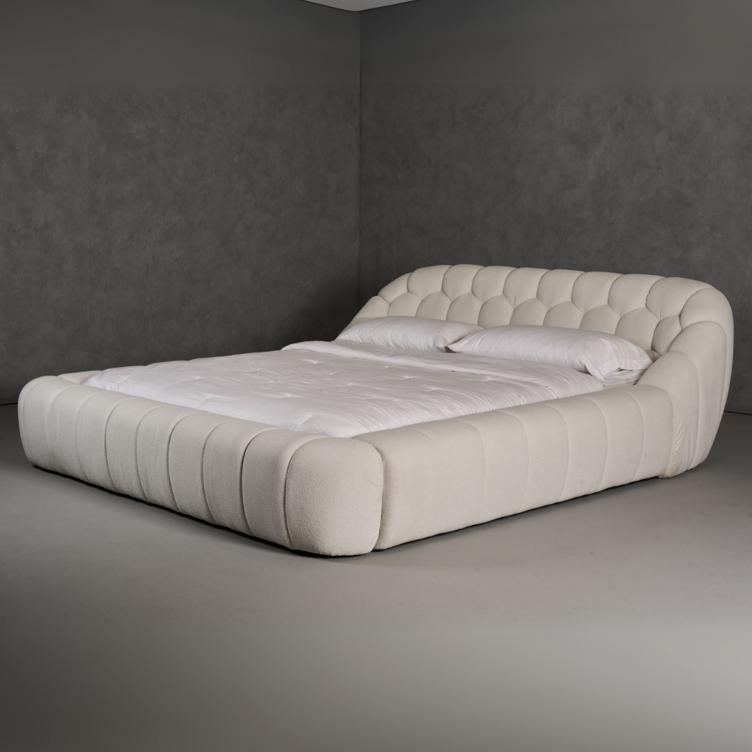 Syrux Bubble Design Modern Cloud Bed In Soft Boucle Fabric Off White King