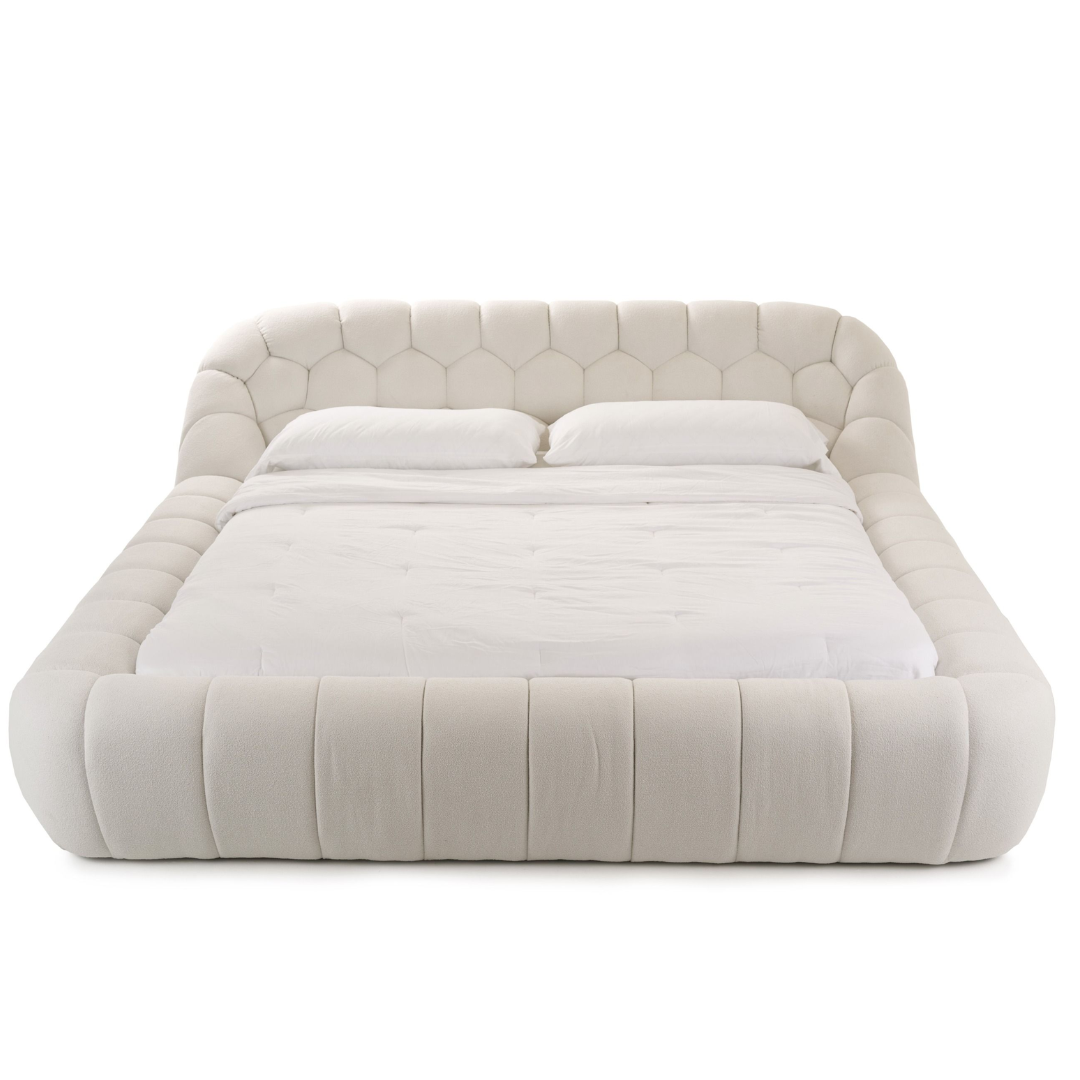 Syrux Bubble Design Modern Cloud Bed In Soft Boucle Fabric Off White Super King
