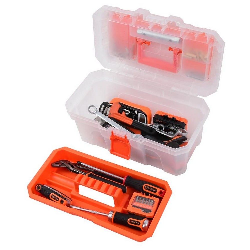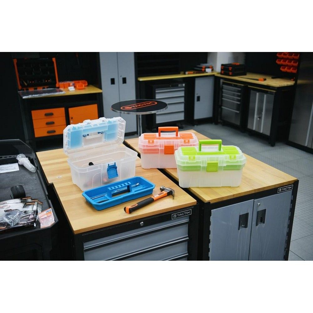Tactix 16 Inches Plastic Tool Box, Clear, For Craft, Medical Storage, Toolbox with Built-In Organization Compartments, Lift-Out Carry Tray, Dimensions: 41W X 23D X 20.5H cm- 320110-O