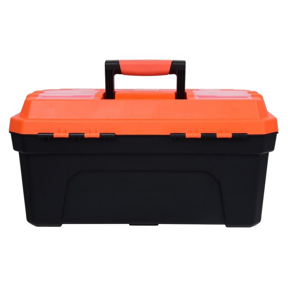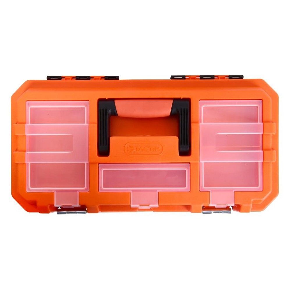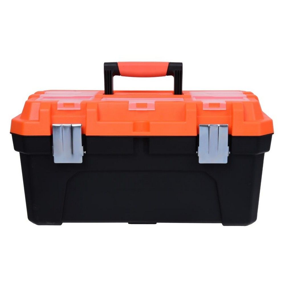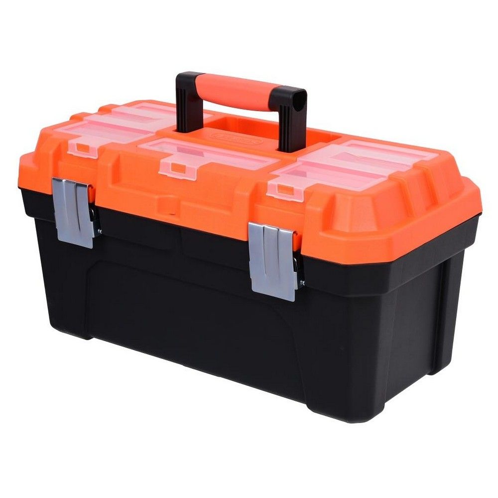 Tactix 20 Inches Plastic Storage Tool Box HD with Lift-out carry tray, Built-in Organization Compartments, Black/Orange, Dimensions: 50.7W x 25.4D x 25.9H cm- 320112