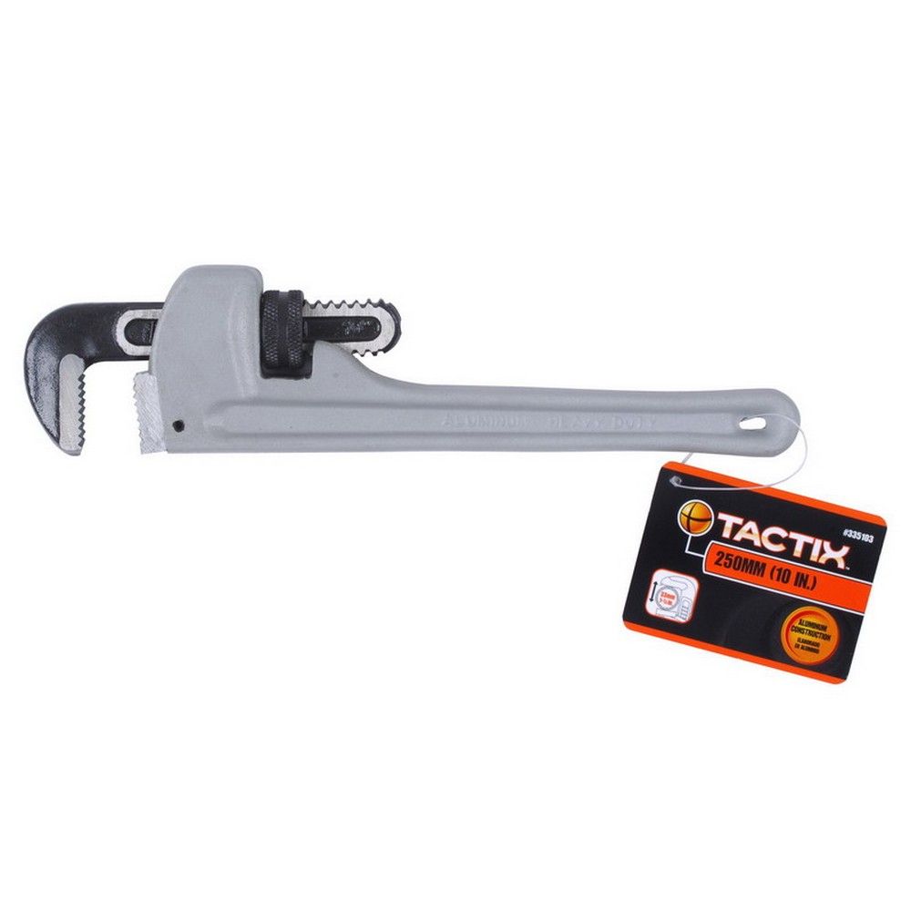 Tactix Heavy Duty Adjustable Pipe Wrench 250mm (10 Inches), Hand Tools For Plumbing, Repair Work, And Home Improvement High Strength, Lightweight Aluminum Handle, Grey- 335103