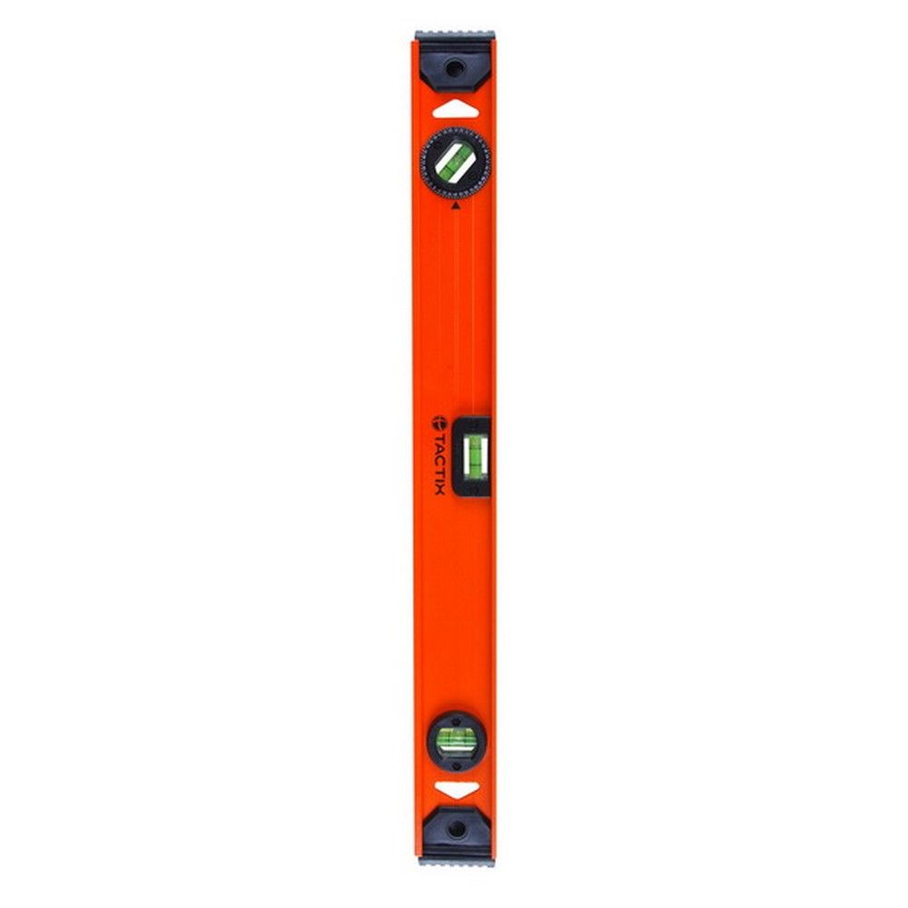 Tactix Level, 24-Inch (600mm) Level, 1 Horizontal And 2 Vertical Vials, For Aligning Surfaces, Rugged Aluminum Frame, Shockproof End Caps, Accuracy 1.0 mm/m, Orange- 250053
