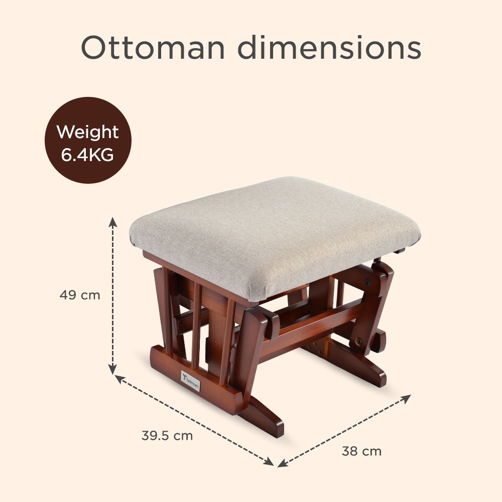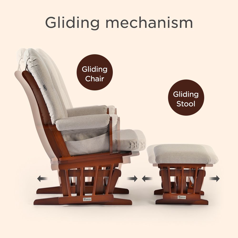 Experience the ultimate in relaxation with the Teknum Deluxe Gliding Chair with Ottoman Set – Beige, by SAMBOX to offer unmatched comfort and style for modern parents. Crafted from premium High Quality Wood, this gliding chair provides sturdy support and smooth, silent motion - perfect for feeding, soothing, or bonding moments with your little one. The timeless beige finish complements any nursery or living space, creating a warm and calming ambiance. When you place your feet on the ottoman for the complete relaxation, not only the chair Glides but the ottoman also has the gliding feature to make it a smooth feeding or lullaby session for your precious one.