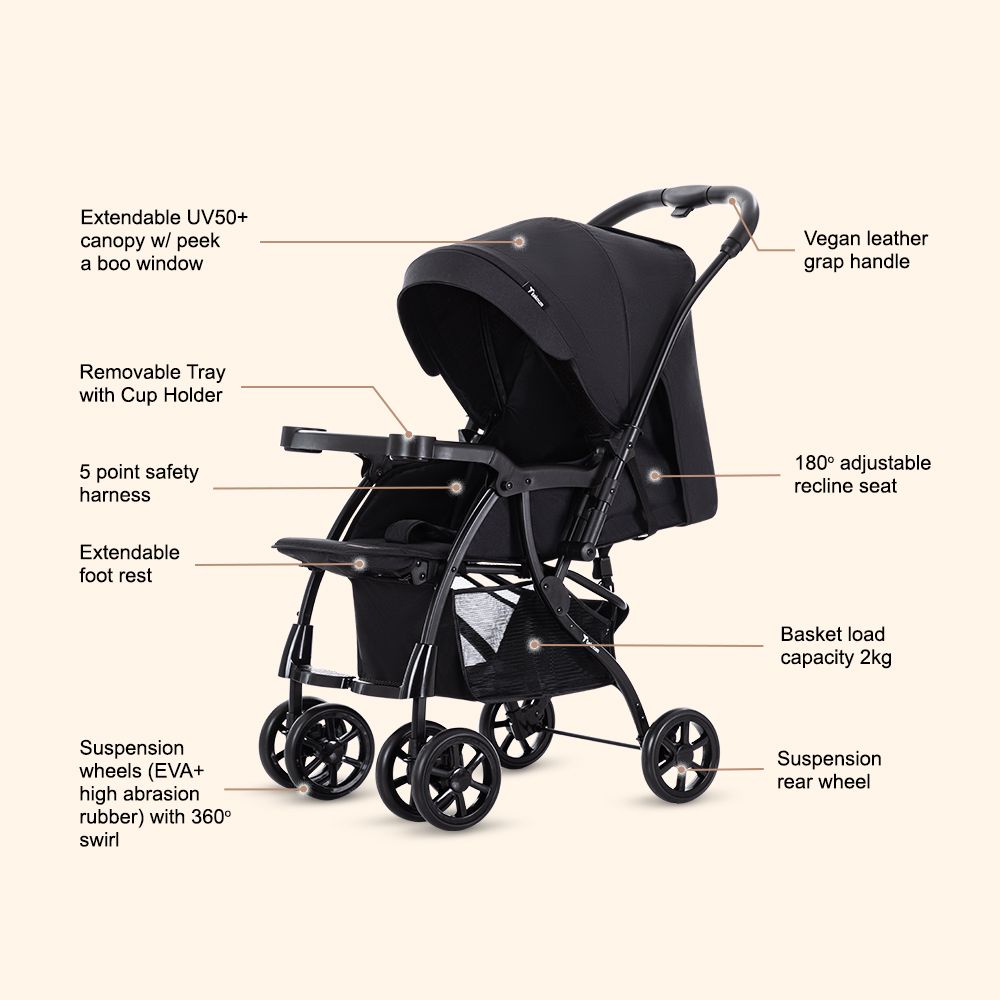 The TEKNUM Look at Me Reversible 2 Stroller is designed for modern parents who want style, convenience, and safety packed into one. Suitable for newborns up to 36 months, this stroller makes every outing easy with its one-hand folding mechanism and lightweight steel frame. Whether it’s a quick grocery run or a long walk in the park, the stroller ensures comfort for your little one and convenience for you.