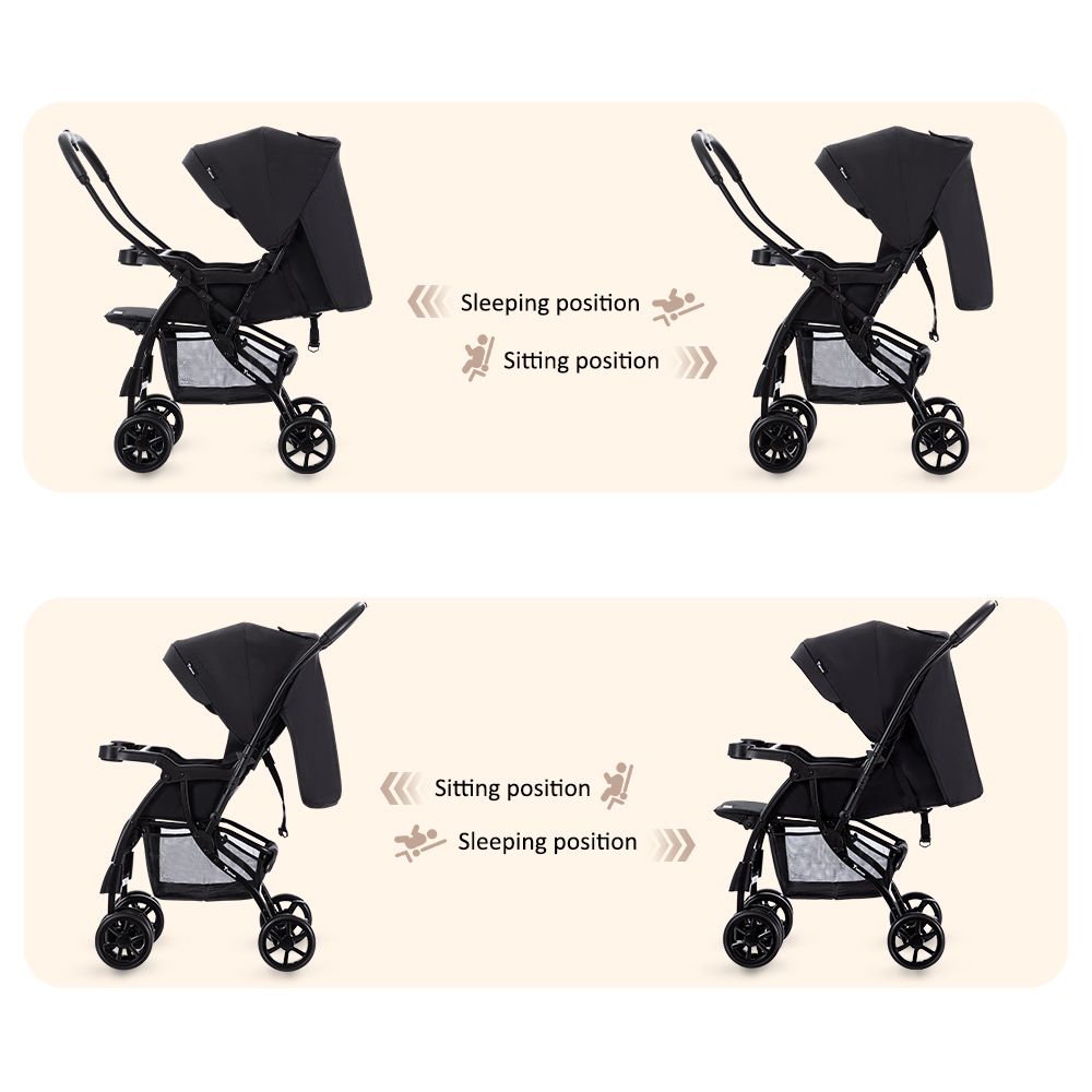 With its clever reversible handle, this stroller lets you switch between parent-facing and forward-facing modes in seconds, keeping your baby close and connected or letting them explore the world ahead. The 5-point safety harness, adjustable footrest, and reclining seat offer a snug, secure ride, while the large 300D linen canopy with peekaboo window protects your child from sun and wind. Its EVA wheels with front swivel lock, rear brakes, and suspension ensure a smooth, bump-free ride on different terrains.