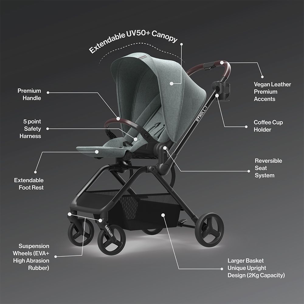 • The revolutionary compact folding mechanism of the TEKNUM STROLL - 1 Reversible Travel Stroller, makes it a compact stroller and perfect for Travels.