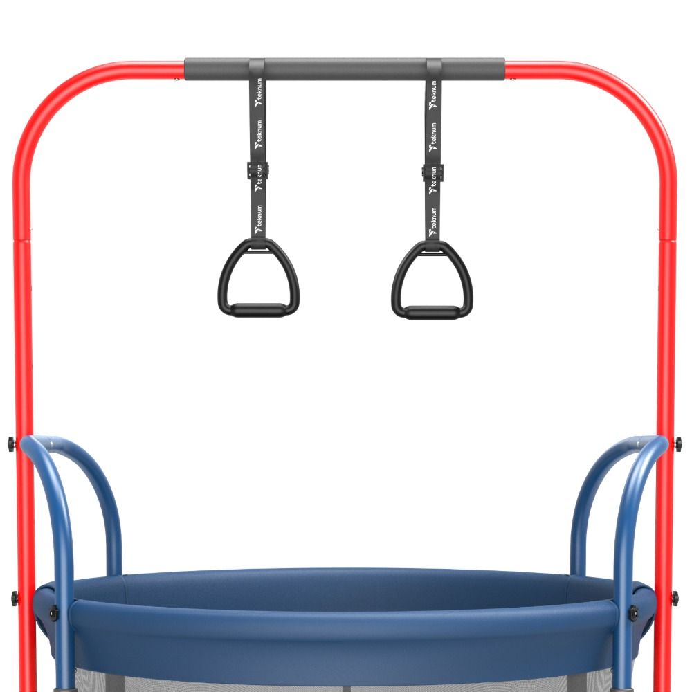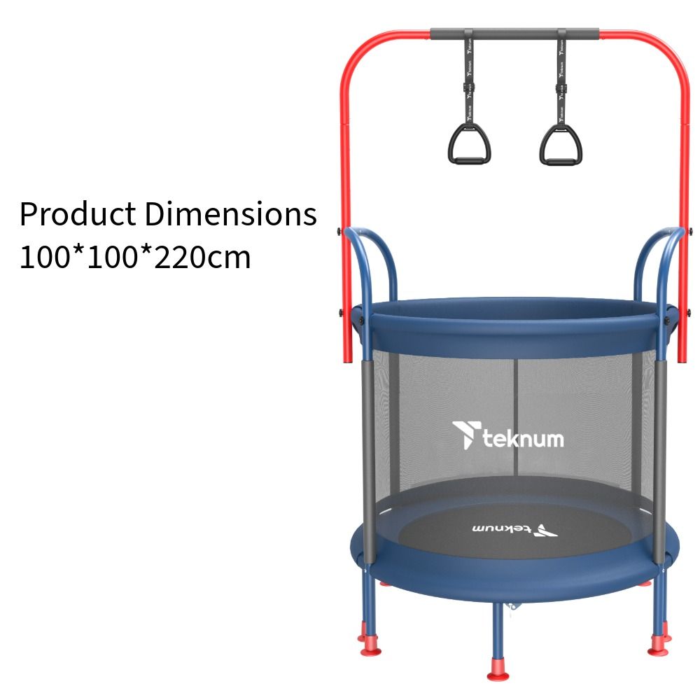 The Bounce Pro comes with a full set of accessories including a safety fence kit, cloth cover, lifting rings, handrails, guardrails, stands, bolts, and an easy-to-use tool kit for quick assembly. The protective fence ensures kids stay safely inside while jumping, making it the ultimate combination of fun and peace of mind. Give your children the joy of active play with the Teknum Trampoline Bounce Pro—the perfect mix of fitness, entertainment, and safety!