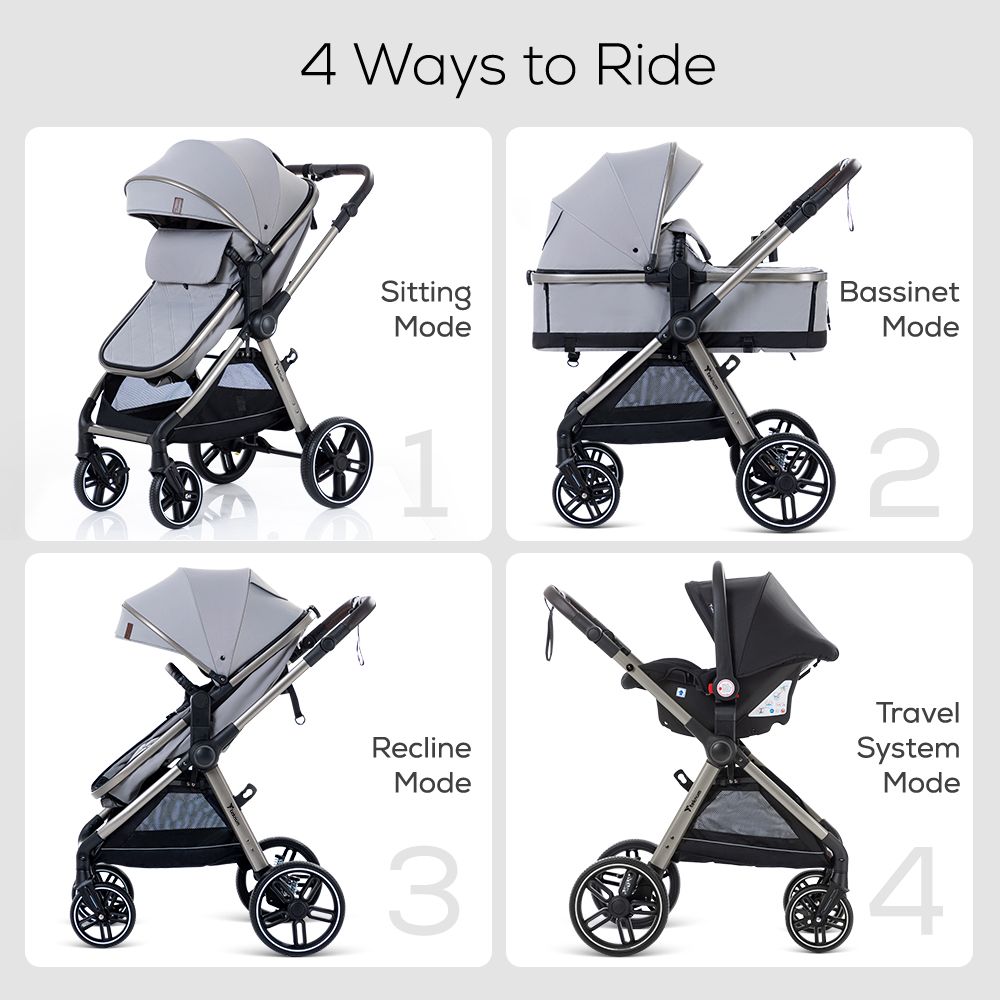 Every detail of this combo has been thoughtfully crafted to make parenting on the go effortless. The reversible seat and handle let you switch from world-facing to parent-facing mode in seconds, encouraging bonding while strolling. The front and rear wheel suspension absorbs shocks for a smooth ride on any terrain, while the 5-point harness keeps your baby securely in place. The car seat’s 3-point safety harness, ergonomic padding, and Oxford fabric canopy ensure superior protection and comfort, even on longer drives. With features like linked rear brakes, adjustable footrest, peekaboo canopy, and one-hand folding, this travel system is as practical as it is elegant.