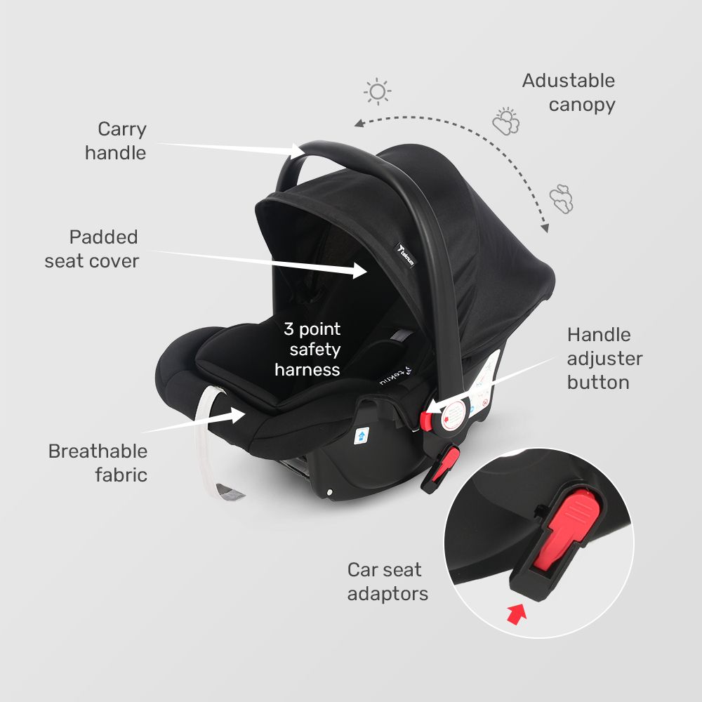 Complete 3-in-1 Travel System : Designed to adapt from newborn to toddler (0–36 months), this stroller seamlessly transitions between stroller mode, carrycot, and car seat. The included Teknum Infant Car Seat securely attaches using the compatible adaptor, creating a fully integrated travel system that allows smooth, quick transitions from car to stroll without disturbing your baby’s sleep.