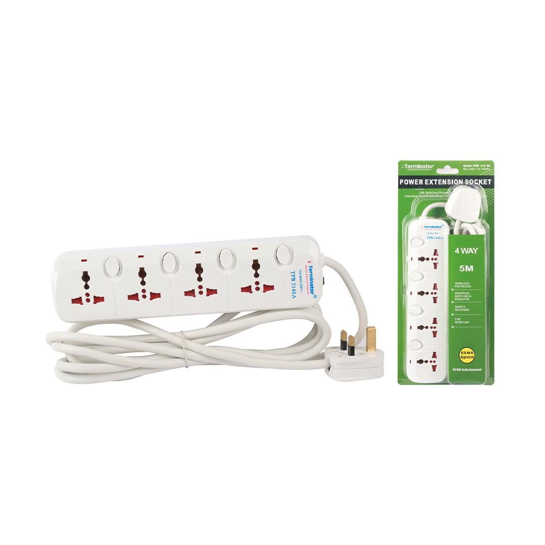 Terminator 4 Way Universal Power Extension Socket 5M Cable