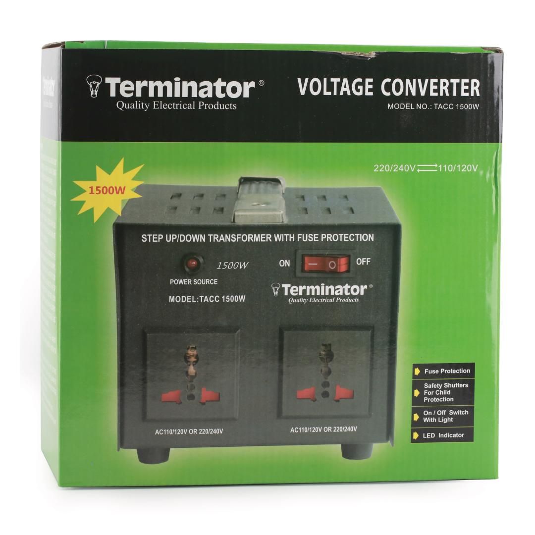The product Terminator Ac/Ac Voltage Converter 1500W images have props used for illustrative purposes. Product Color may vary slightly due to photographic lighting or your screen settings.