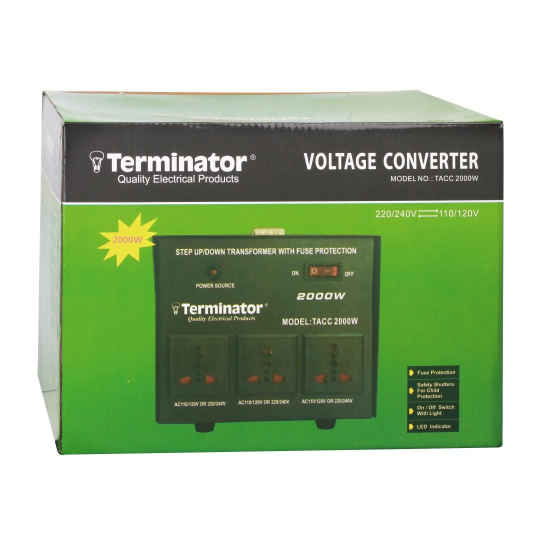 The product Terminator Ac/Ac Voltage Converter 2000W images have props used for illustrative purposes. Product Color may vary slightly due to photographic lighting or your screen settings.