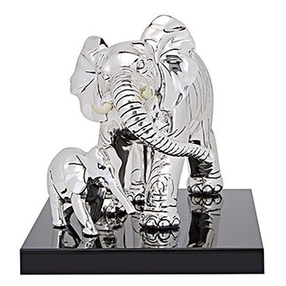 Tenderness and strength, captured in time with this silver-coated piece of a majestic Elephant and its Calf.