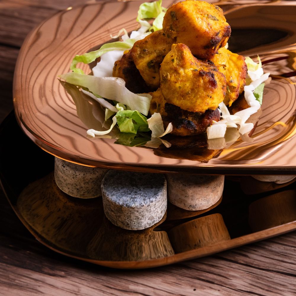 The product The Flow Hot & Cold Serving Platter Stainless Steel- Rose Gold images have props used for illustrative purposes. Product Color may vary slightly due to photographic lighting or your screen settings.