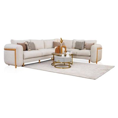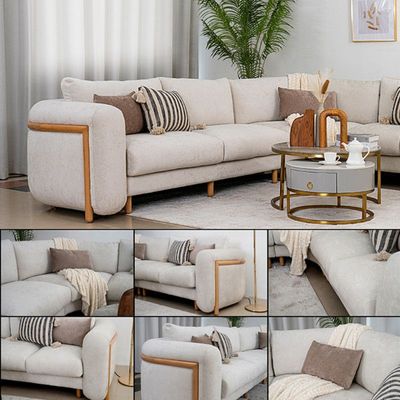 Introducing the exquisite Gaston Corner Sofa, Constructed with a sturdy wooden leg type, the sofa’s foundation exudes durability and stability, and the loose seat type enhances the seating experience, providing a delightful balance of plushness and support.