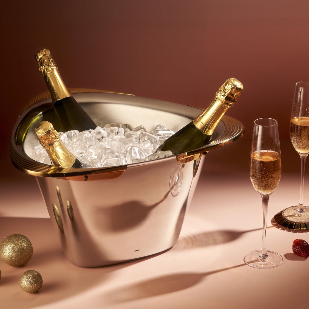 The product The Gatsby Champagne Bucket Stainless Steel images have props used for illustrative purposes. Product Color may vary slightly due to photographic lighting or your screen settings.