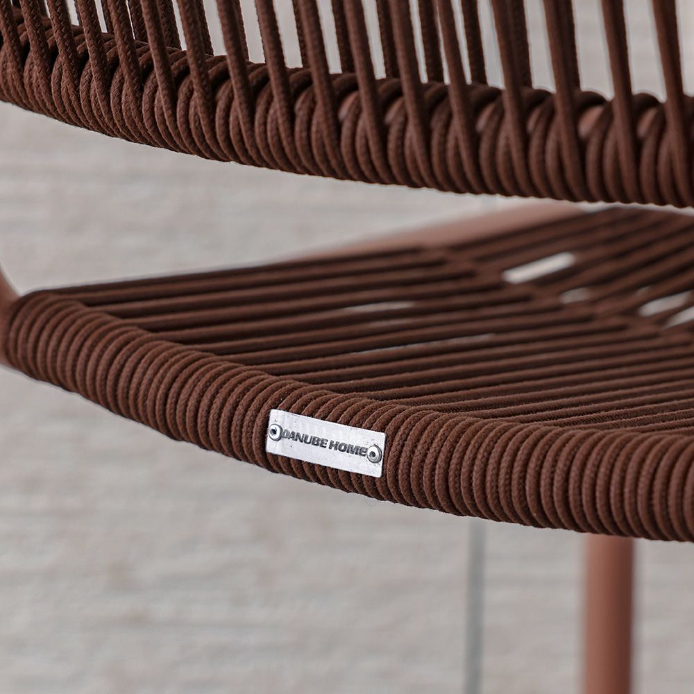 The chair is accented with braided rope detailing and horizontal tubing for a modern aesthetic.