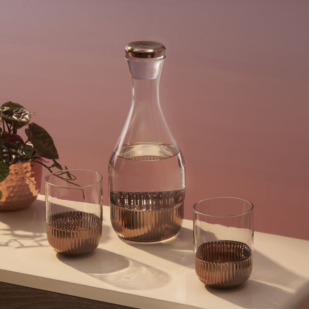 The product The Nova Water Carafe- 1 Liter Capacity images have props used for illustrative purposes. Product Color may vary slightly due to photographic lighting or your screen settings.
