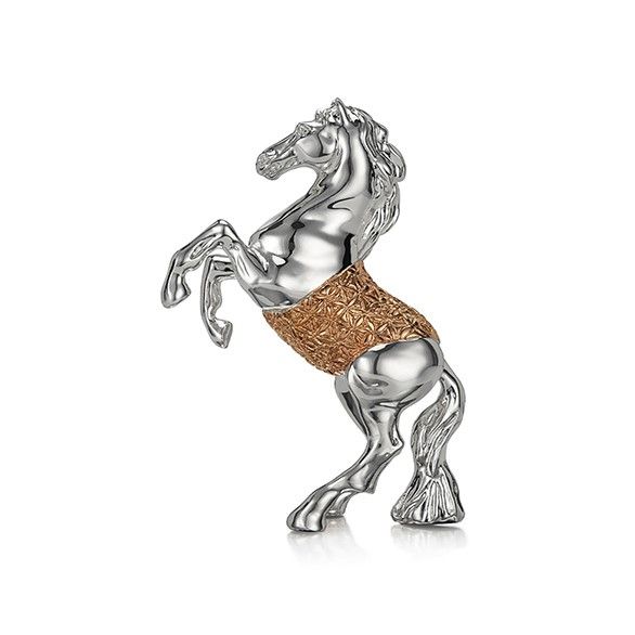 Symbolising its willingness to conquer, takes its most powerful stance. Finished in a silver and rose-gold hue the design is a toast to equestrian affinity.