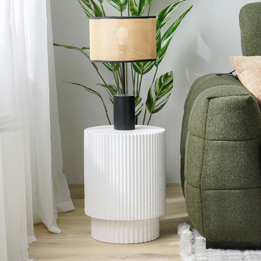 It displays an elegant round design with a ribbed pattern that renders a sense of refinement to the ensemble.