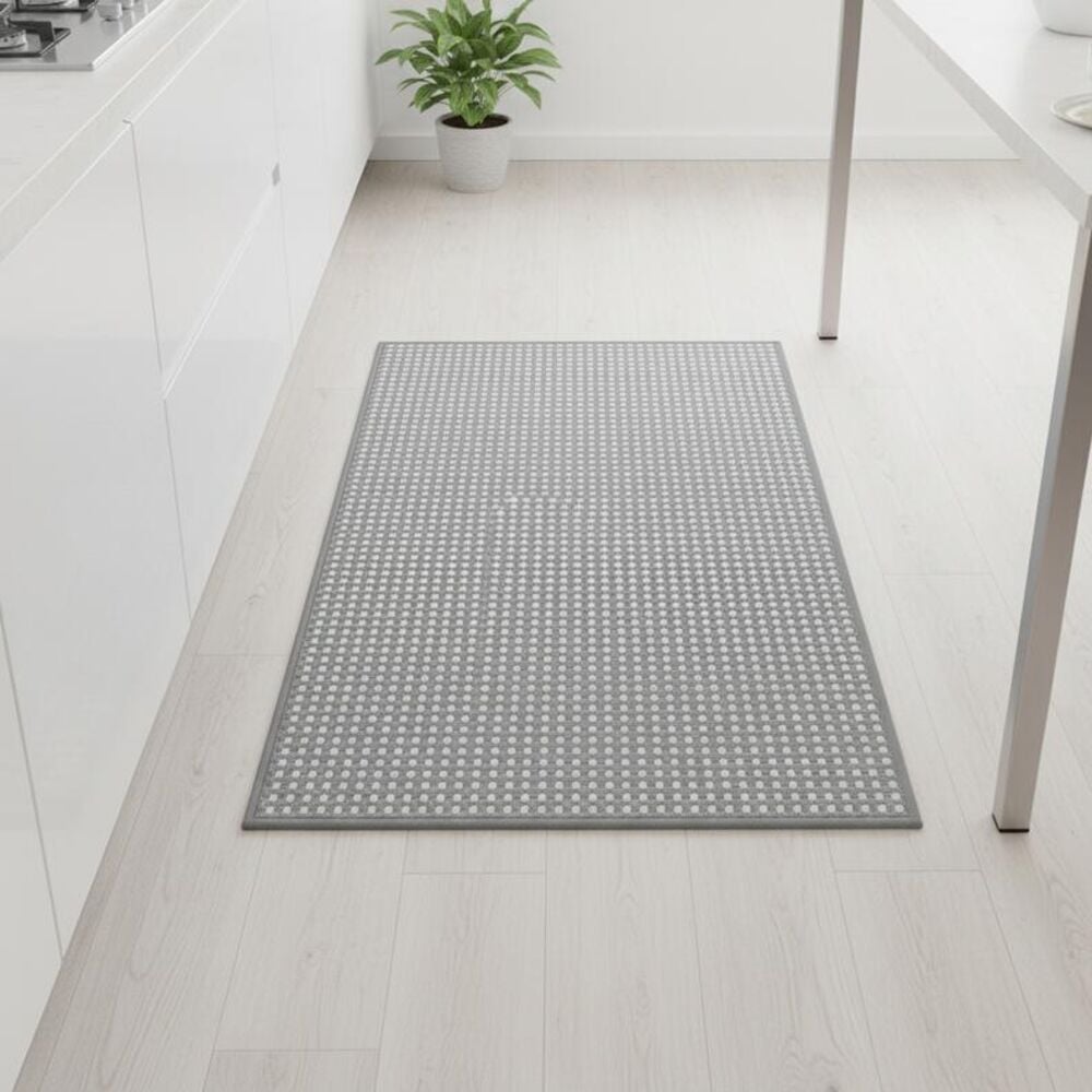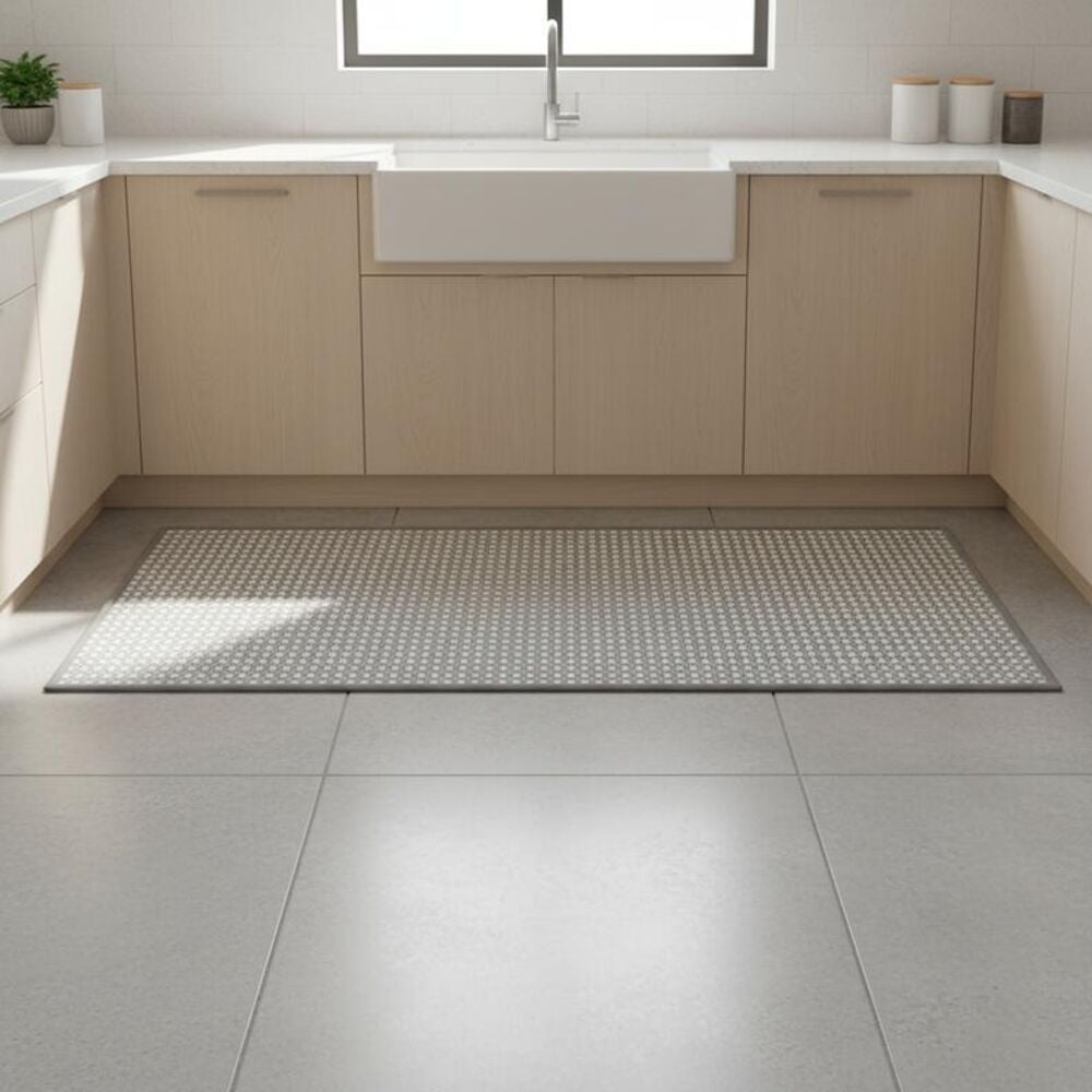 A long kitchen mat is specially designed to prevent slipping, with anti-skid rubber granular lining.