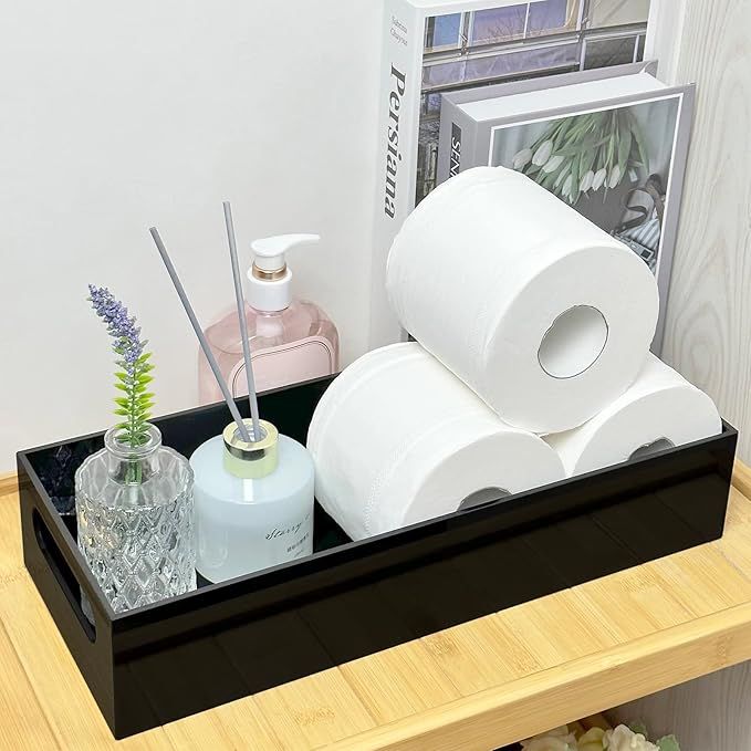 Acrylic Toilet Paper Storage Basket, Modern Black Toilet Paper Tray for Bathroom