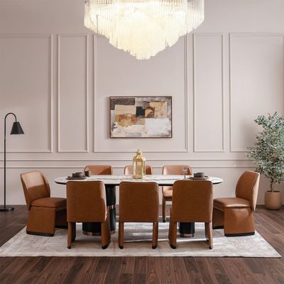 Tokishi 1+8 Sintered Stone Top Dining Set-White/Brown
