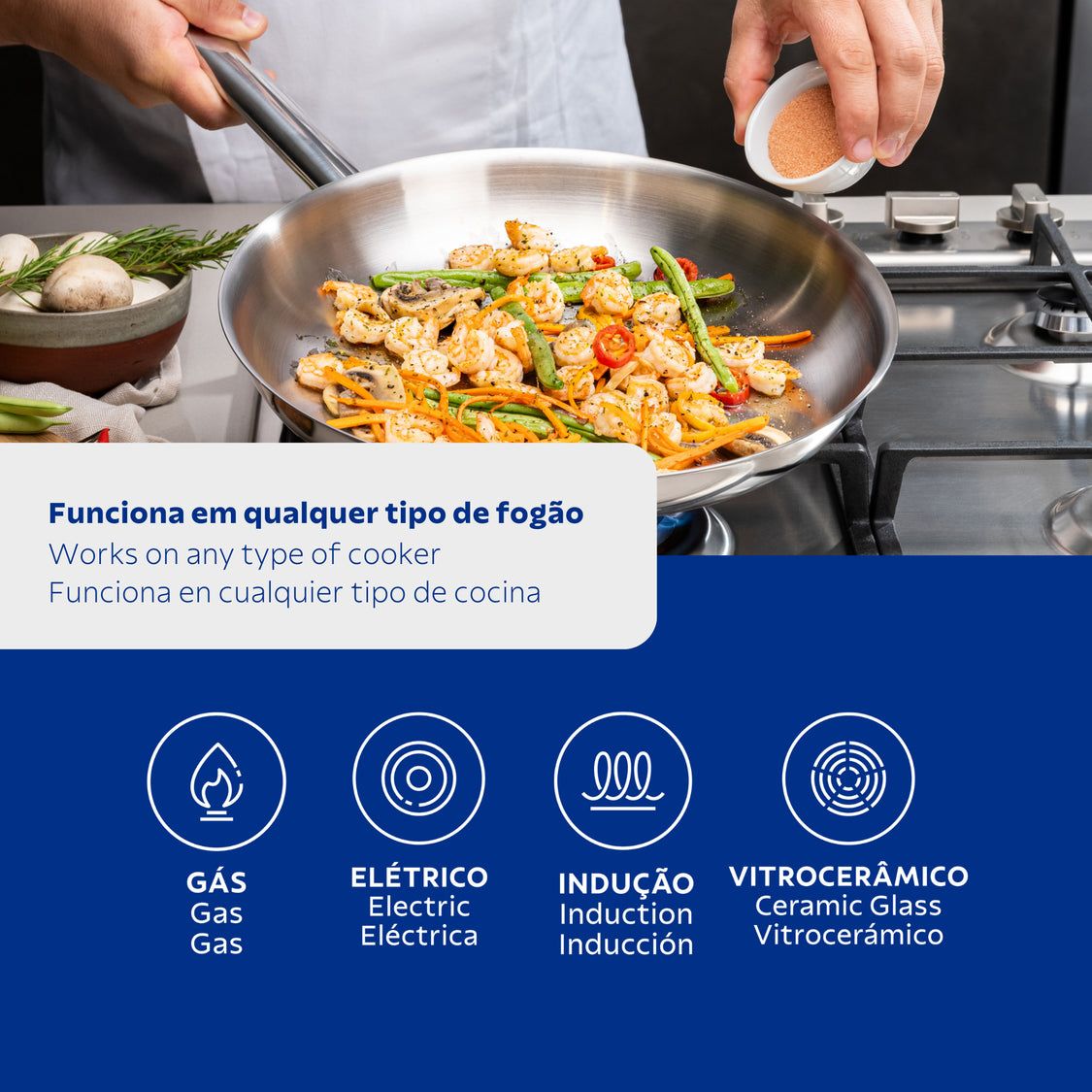 Tramontina Professional 30 cm 2.9 L shallow stainless steel frying pan with long handle and tri-ply base