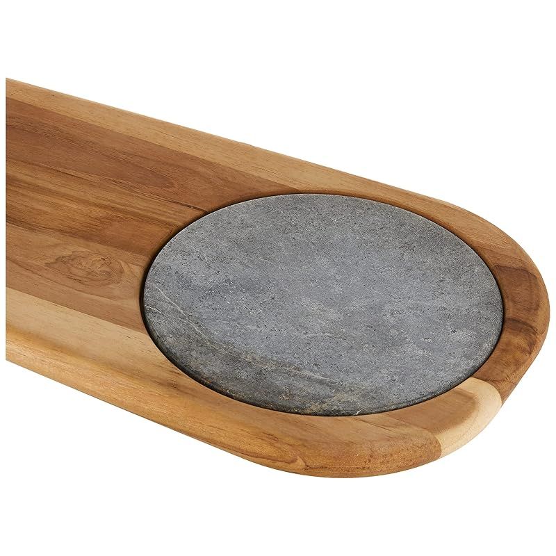 Tramontina Provence 48x19cm Teak Wood Cheese Board with Stone and Handle with Mineral Oil Finish