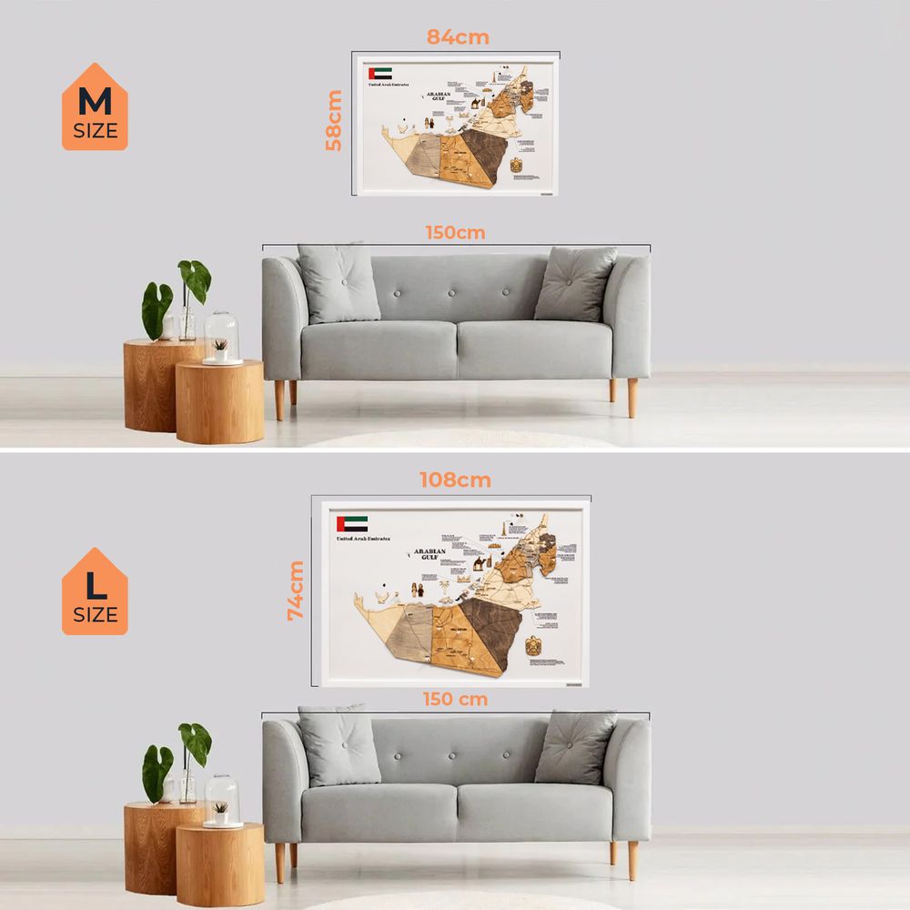 ✔ Multicolor Layers on White Panel – Stunning contrast highlighting the UAE’s regions and modern design.