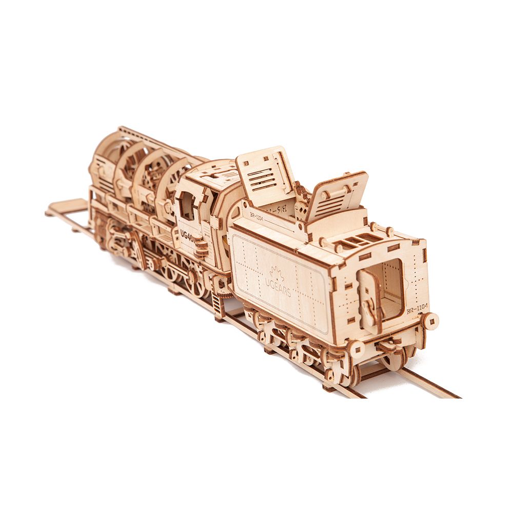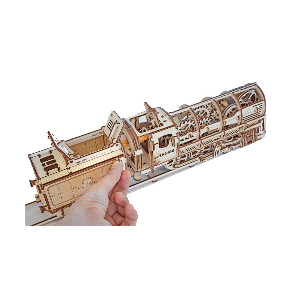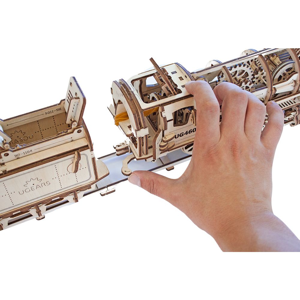 Ugears, Made in Europe, 3D Wooden Puzzle Steam Train Locomotive with Tender Educational STEM Learning DIY Woodcraft Construction Toy for Adults & Kids, Perfect for Gifting, No Glue Needed, UGR-70012