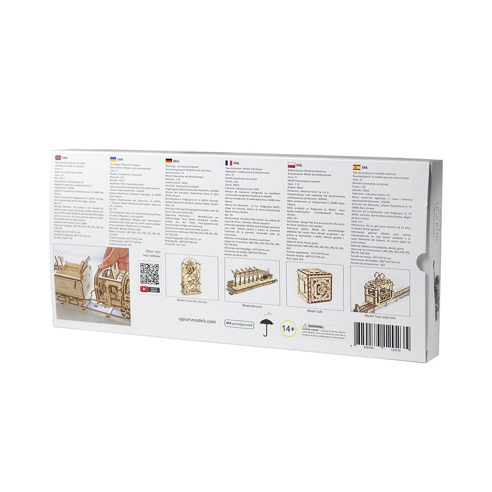 Take a step back in time and explore the golden age of railroads with the Ugears, Made in Europe, 3D Wooden Puzzle Steam Train Locomotive with Tender. This elegant, fully mechanical model replicates the essence of a 19th-century steam engine, offering an immersive building journey through motion, mechanics, and design. Crafted in Europe from premium, eco-friendly plywood, this Woodcraft Construction Toy is a showcase of fine engineering and creativity.